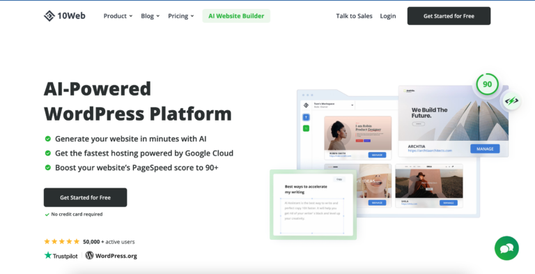 10Web is an AI-powered platform built on WordPress. This makes it an ideal choice for small businesses that want the flexibility and features of WordPress without all the technical fuss!
